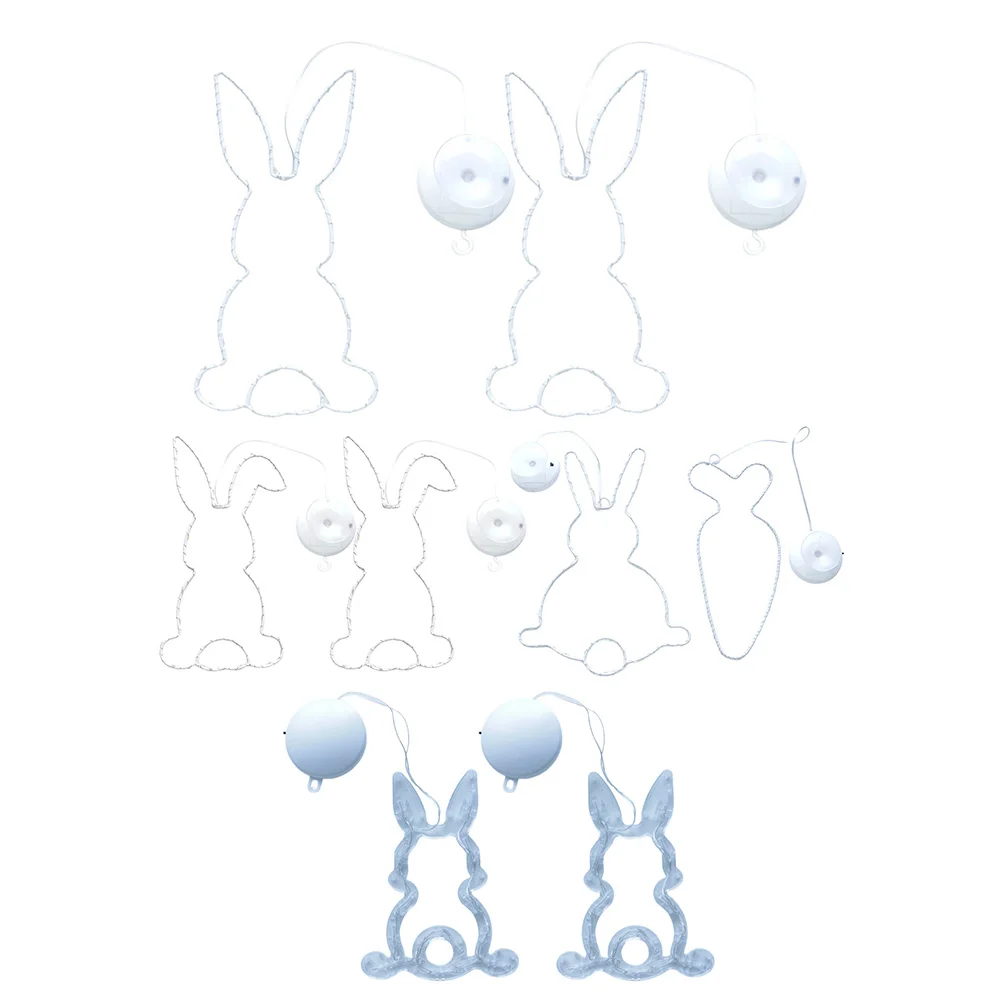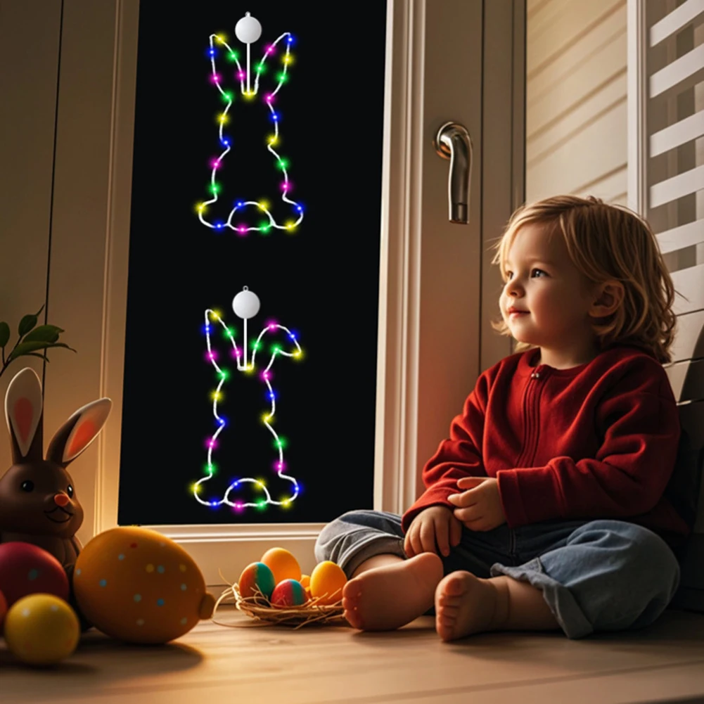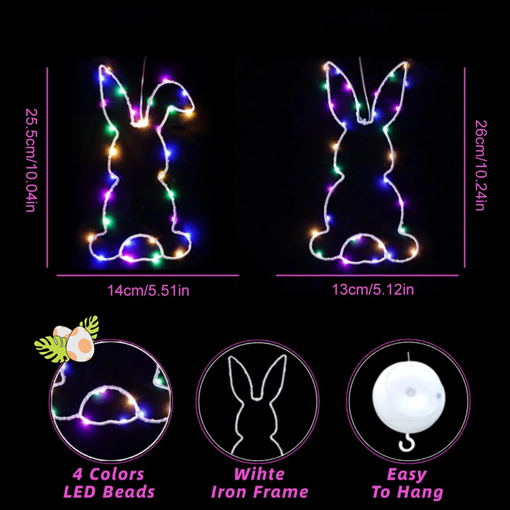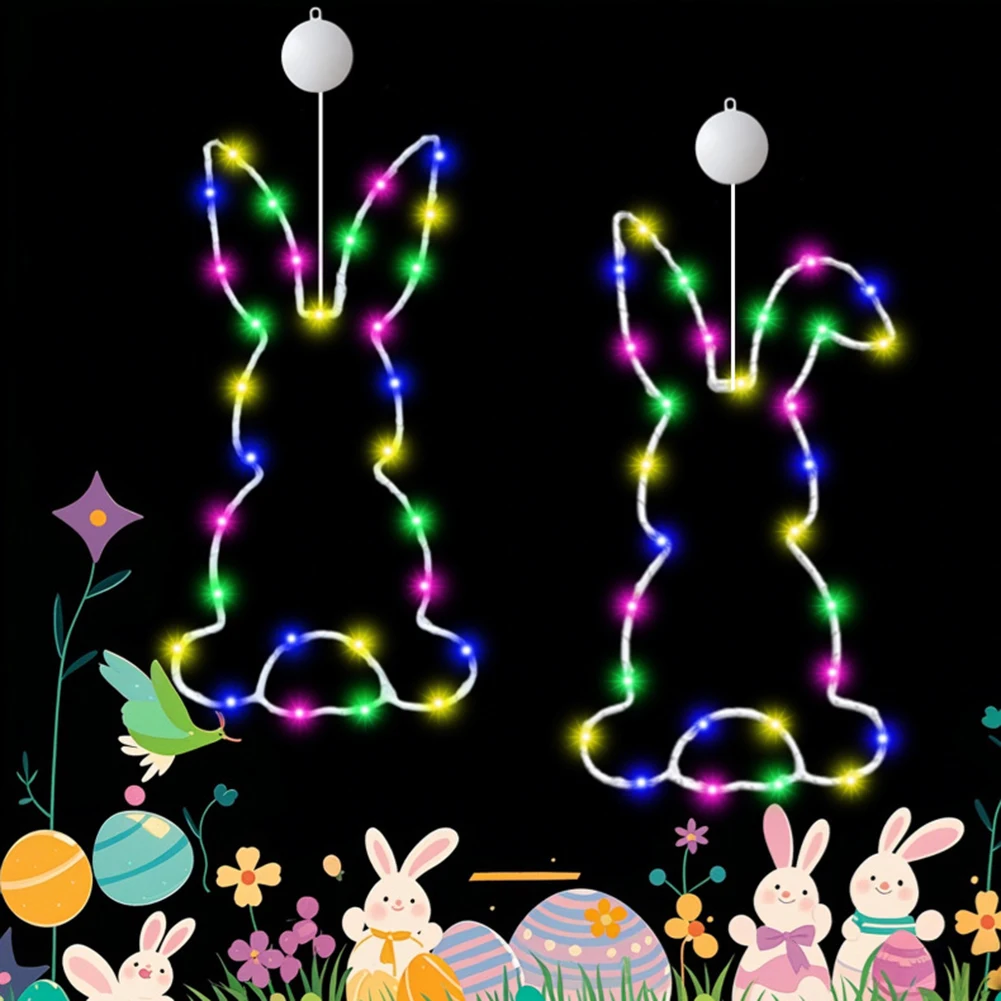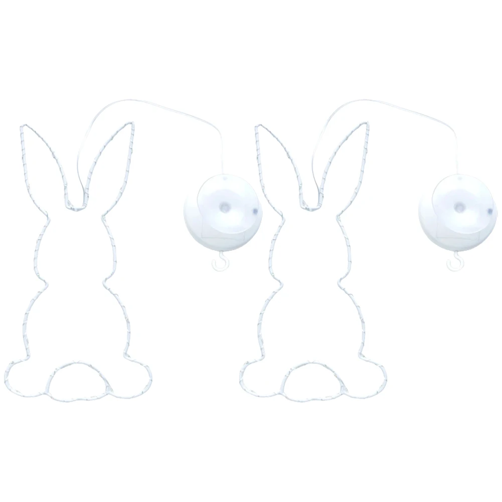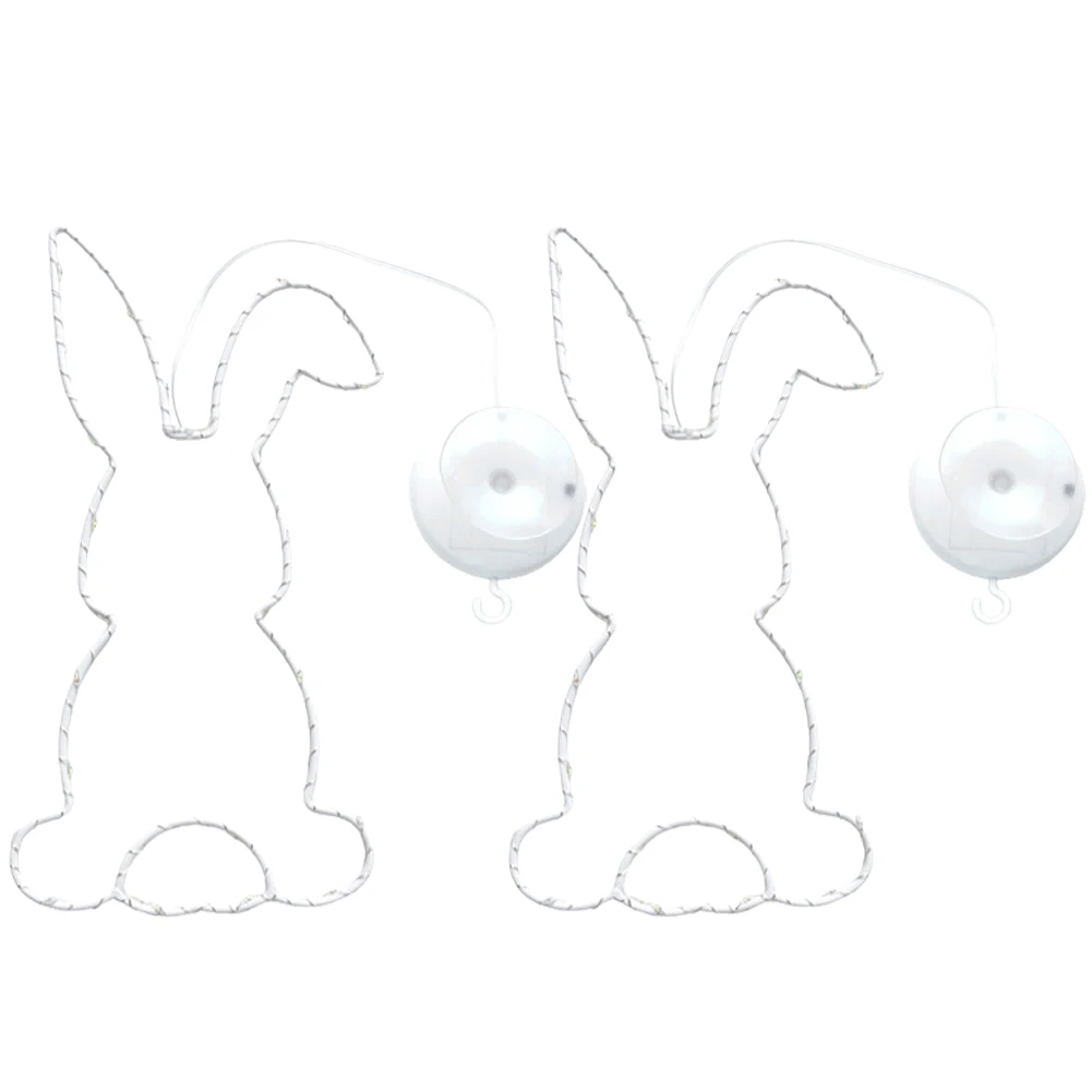2Pcs LED Easter Bunny Window Fairy Lights with Suction Cup Cute Bunny Window Light Battery Operated Luminous Rabbit Pendant for Festive Atmosphere Decoration